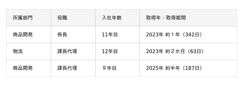 このような状況の中、サンクゼールでは、2025年までに14名の男性社員が育休を活用。2021年に1年間の男性長期育休取得者を契機に、男性の育休取得において、6か月以上の長期取得が半数以上を占め、積極的な傾向が見られます。短期取得に偏らず、育児と仕事の両立を支援する環境が整ってきていることが、今回わかってきました。