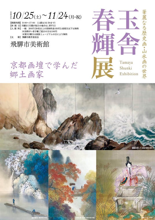 岐阜県飛騨市(市長:都竹淳也)の飛騨市美術館では、岐阜県美術館に所蔵される《武陵桃源図》などで知られる玉舎春輝の特別展を開催します。本展では、華麗で気宇壮大な歴史画と山水画の世界をご紹介します。ぜひご堪能ください。
