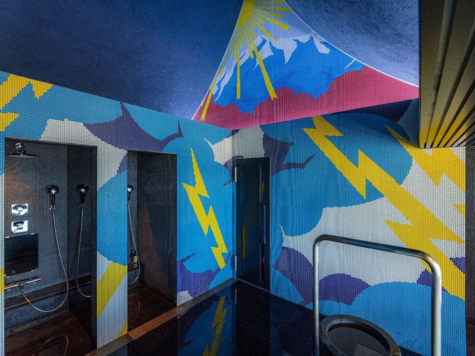 一日を締めくくるのは、ホテルグランミラージュ9階の「SPA BALNAGE(スパ・バルナージュ)」。立山連峰や富山湾を一望できる「絶景サウナ」や、鮮やかなタイルアートは圧巻だ。地上40m。あまりの開放感に少しひるむ。次第に素っ裸で僧ケ岳に向き合う非日常感が面白くなってくる。室温90度の絶景サウナで全身しっかり汗をかいた後は、水温30度ほどの「不感温度水風呂」へ。伏流水を使用していて、肌当たりはとろけるよう。そういえば埋没林も地下水に浸っていたっけ。凝り固まったあれこれが全て溶けていく気がした。