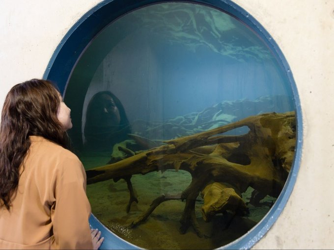 魚津埋没林は、約2千年前に片貝川の氾濫で土砂に埋まったスギの原生林の痕跡。海面上昇で沈んだ後、地中の豊富な伏流水が腐食を防いだと考えられている。最近はSNS映えの良さで水中展示館が人気だという。「撮り方で印象が変わるので、いろんな角度で試してみて」と石須秀知(いしずひでとも)館長は話す。水槽は地下水で満たされ、時折空気の泡がきらきらと光る。水面に映る逆さの樹根をいつまでも眺めていたくなった。