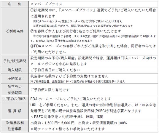 この冬のご旅行は、ぜひお得な『メンバーズプライス』を利用してFDAでの空の旅へお出かけください。