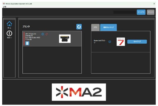 さらに、当社はハードウェアとソフトウェアの両面からお客様の生産を支援するため、新たにソフトウェア統合管理ツール「Mimakiアプリケーションアシスタント(MA2)」を同時に公開いたします。MA2では、お客様がお持ちのミマキ製プリンタに対応する各種ソフトウェアを一覧表示し、常に最適な状態で管理することが可能です。これにより、製品アップデートや機能拡張をシームレスに活用でき、進化を続ける当社のソフトウェアの利便性を最大限に発揮頂けます。