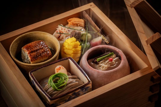 メインダイニングでの夕食では、冬の信州の豊かな恵みを一度に味わう、本プログラム限定の「蒸し八寸」を提供します。鰻の飯蒸しや、白身魚を蕎麦で包んで蒸し上げる信州ならではの「信州蒸し」など、信州の自然と文化が感じられる料理です。せいろの蓋を開けた瞬間に立ち上る湯気と香りが食欲を刺激します。