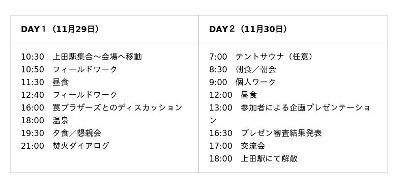 2日間のスケジュール: