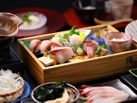 富山湾を一望できるダイニングにて鰤会席や地元食材を使用したお料理をお楽しみください。