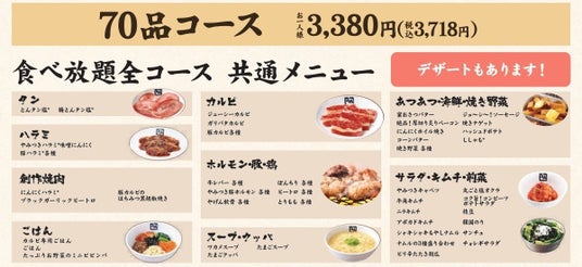 対象:70品コース / 牛角コース / 牛タン・上焼肉コース / 黒毛和牛コース