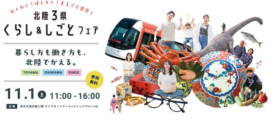 北陸3県(富山県・石川県・福井県)が初めて合同で開催する移住フェアが、2025年11月1日(土)に 【東京交通会館12階ダイヤモンドホール 】にて開催されます。魅力いっぱいの北陸の地域や人、仕事とのワクワクする出会いを楽しめるイベントです。
