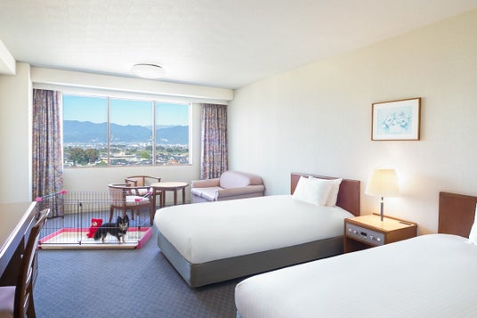 【ご予約‧詳細】https://mercure-naganomatsushiro-resortandspa.jp/rooms/classic-room-twin-dog-friendly-mountain-view/