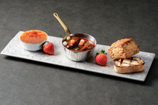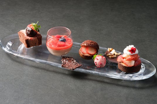 スイーツはムース、シュークリーム、タルト、苺チョコサンドなど、チョコレートのビター&スイートな味わいに苺のフレッシュ感をアクセントにしたセレクションをご用意。しっとりとした生地から濃厚なチョコレートがとろけだすフォンダンショコラも見逃せません。そして、シェフ特製のセイボリープレートには、赤ワインとチョコレートで煮込んだ牛頬肉、カカオ風味をアクセントにした白レバームースのキャラメリゼ、焼き立てのカカオスコーンなどが揃い、ワインやシャンパンとのマリアージュもおすすめのラインアップです。