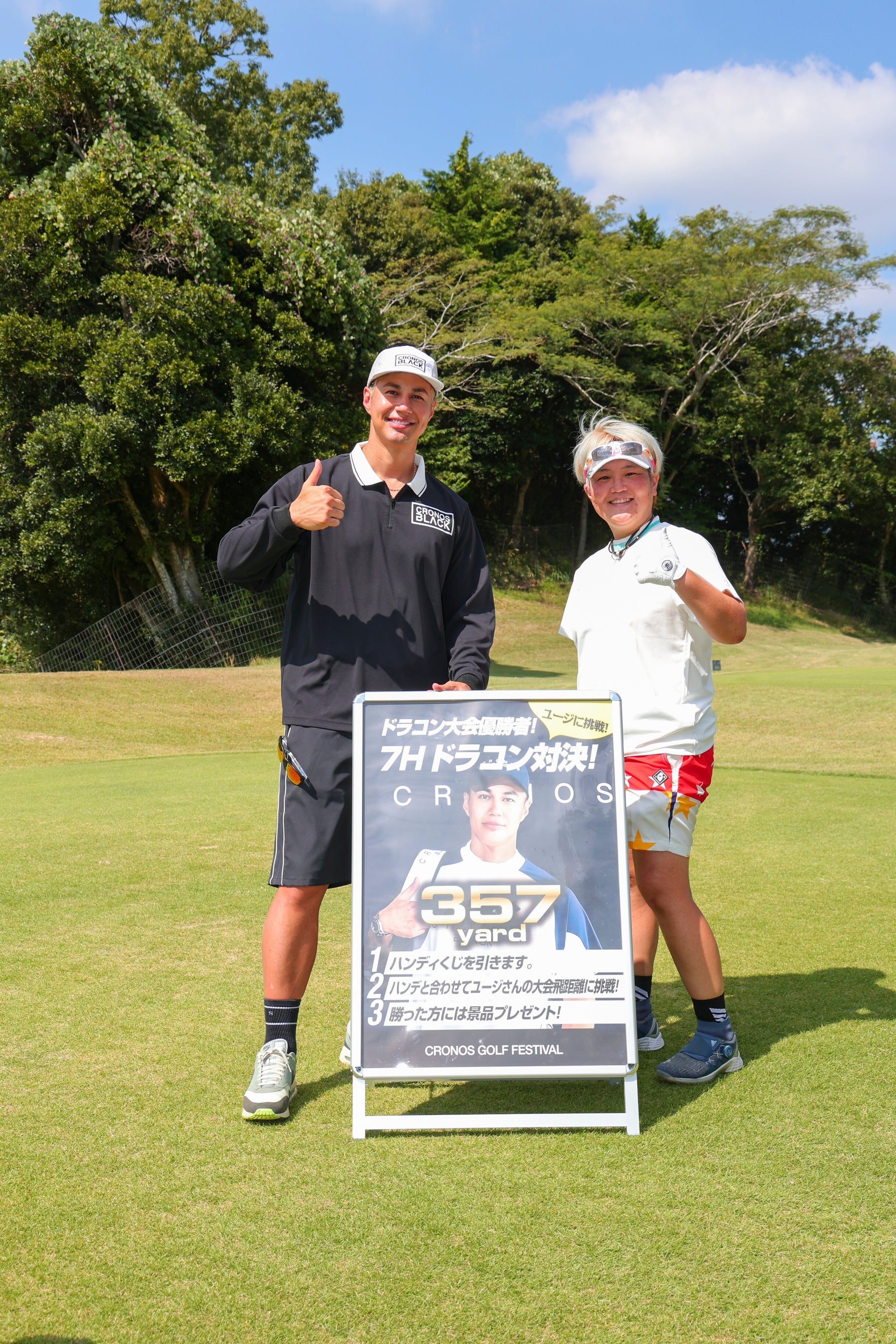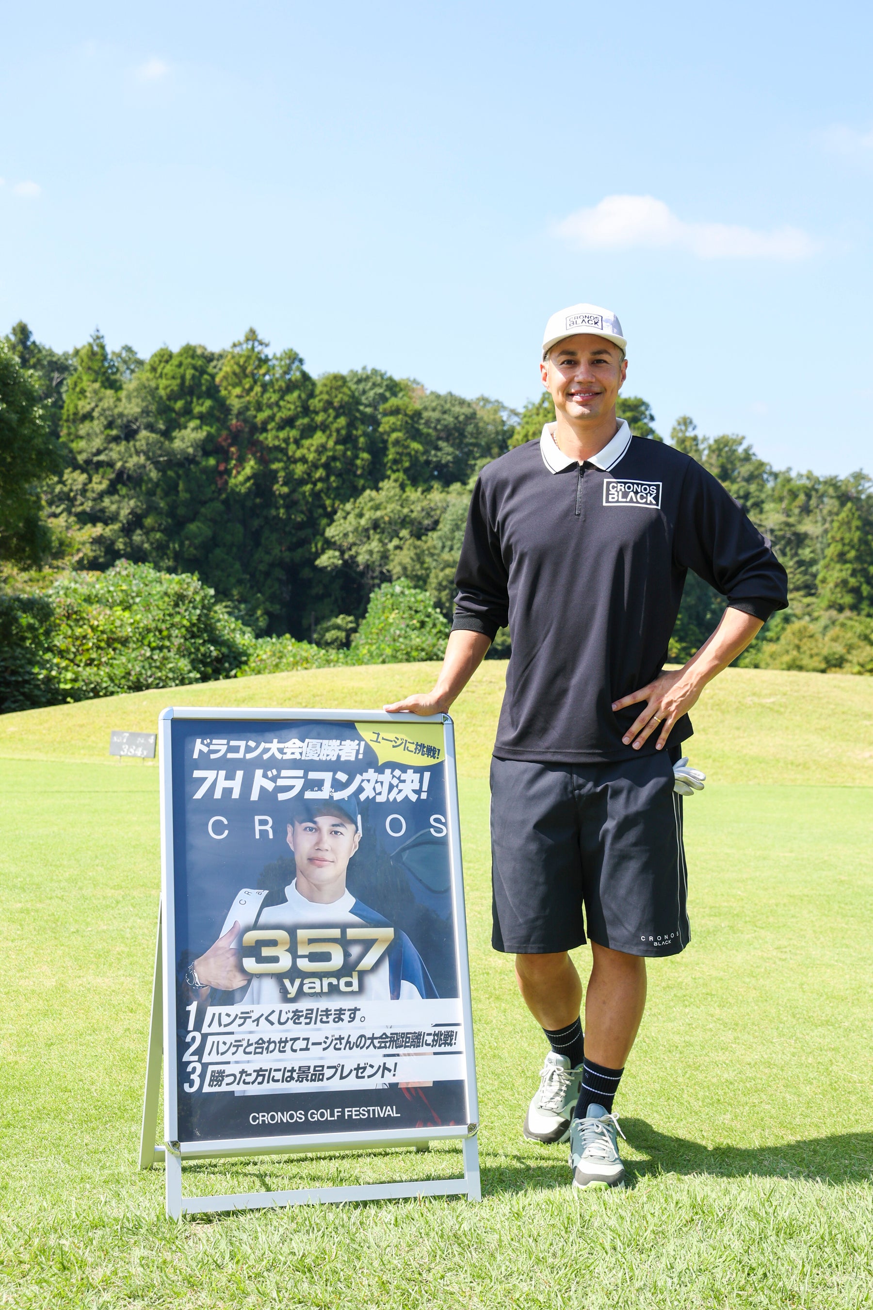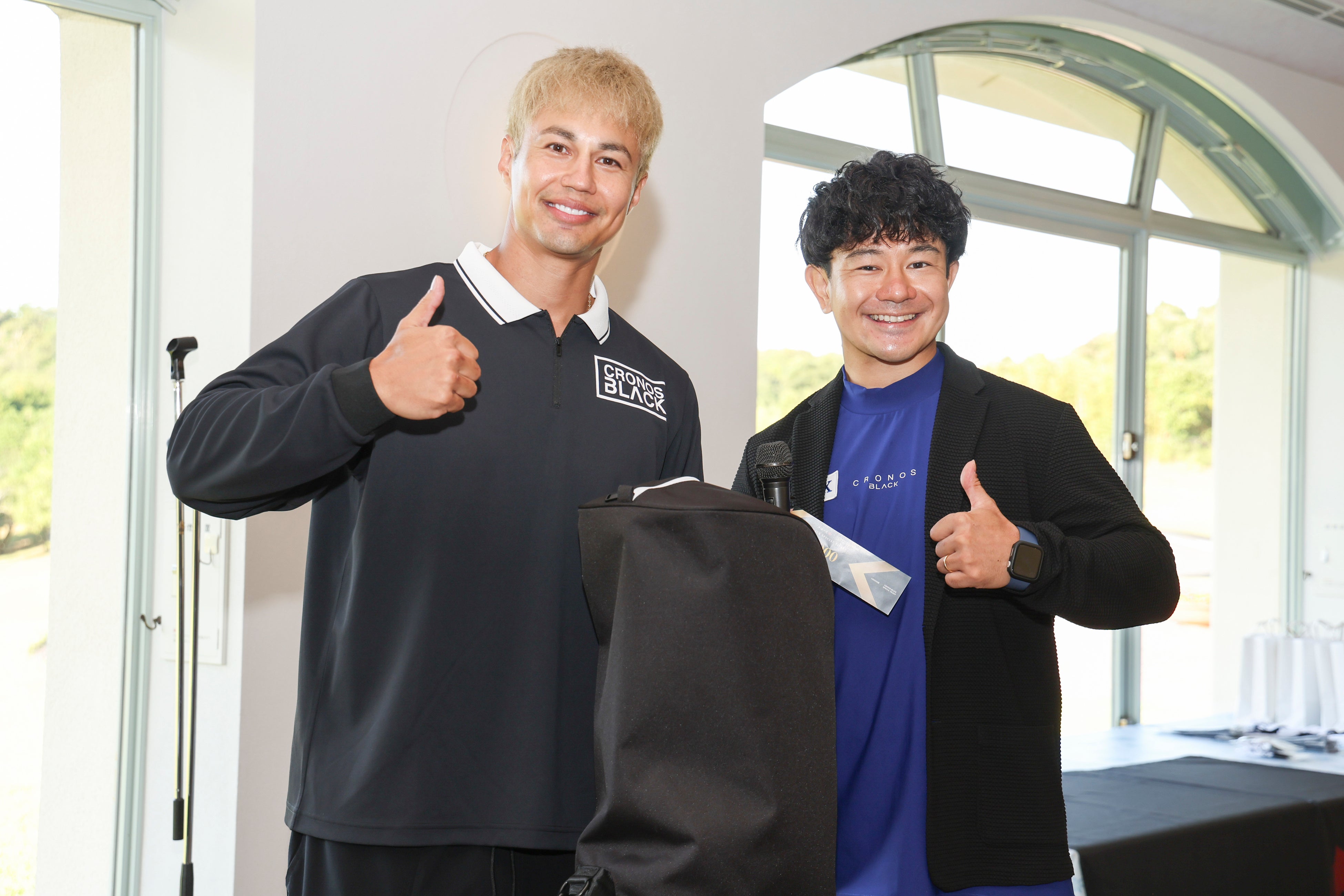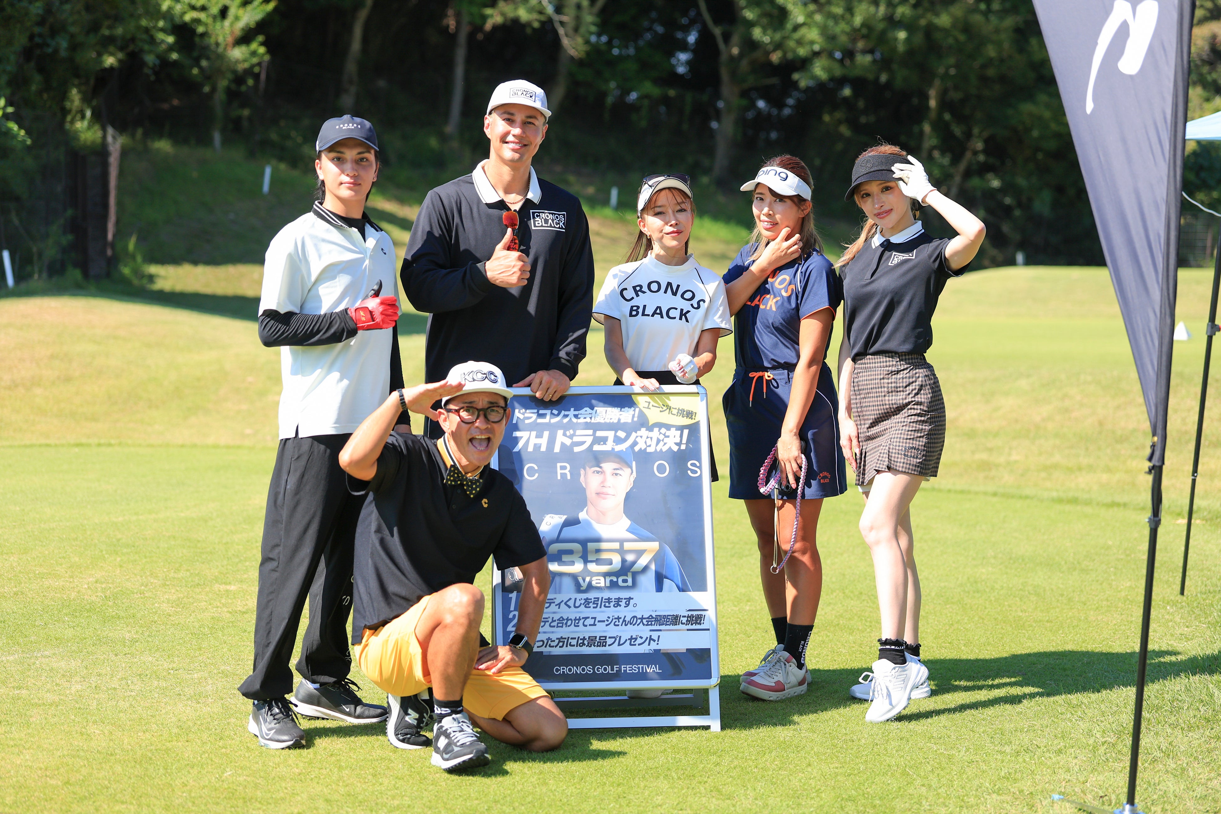 CRONOS BLACKは、2024年よりゴルフに精通しているタレント・ユージ氏をディレクターに迎え、ゴルフシーンに最適なデザインと機能性にこだわったアイテムを展開。今回のイベントでも、ブランドのコンセプトを体現する多彩なコンテンツが用意されました。当日は、スコア対決やチーム戦、ビンゴ大会に加え、2024年に開催された「CRONOS BLACK ドラコン祭」の優勝者でもあるユージ氏のスコアに挑戦するドラコンチャレンジ、アンバサダー奥山ゆうし氏とゴルフタレントなみき氏によるショートホール対決など、初心者から上級者まで楽しめる内容となりました。
