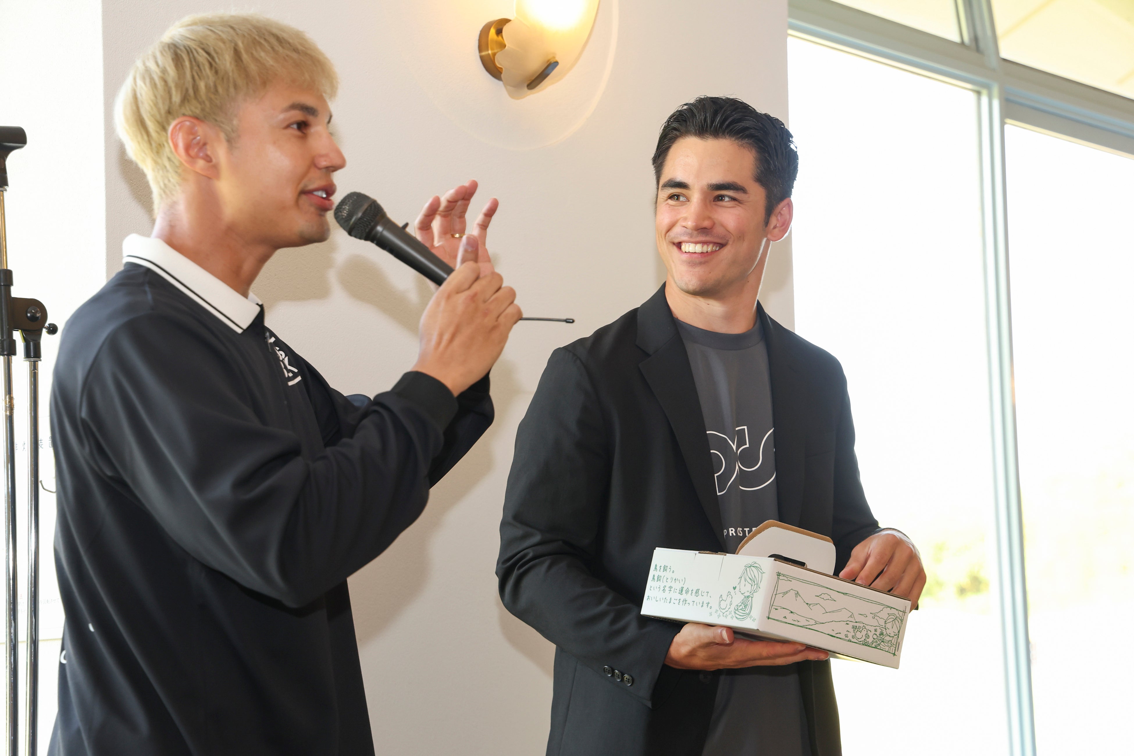 また、竹原慎二氏、REDRICE氏、狩野舞子氏、瀬田玲子氏、林亜莉奈氏、松本大二郎氏、松本一誠氏、ルイコーチ、カーンスティーブン氏、大倉士門氏、バンダリ 亜砂也氏、ゆんころ氏、石関いづみ氏といった、ブランドやディレクターと親交のあるプロや著名人も多数来場し、会場を華やかに彩りました。MCは黒田カントリークラブ氏が務め、ユージ氏、なみき氏、奥山ゆうし氏らと共にイベントを盛り上げました。さらに、クラブハウス内ではCRONOS BLACKのPOP UP STOREも同時開催され、新作アイテムの先行販売も実施。