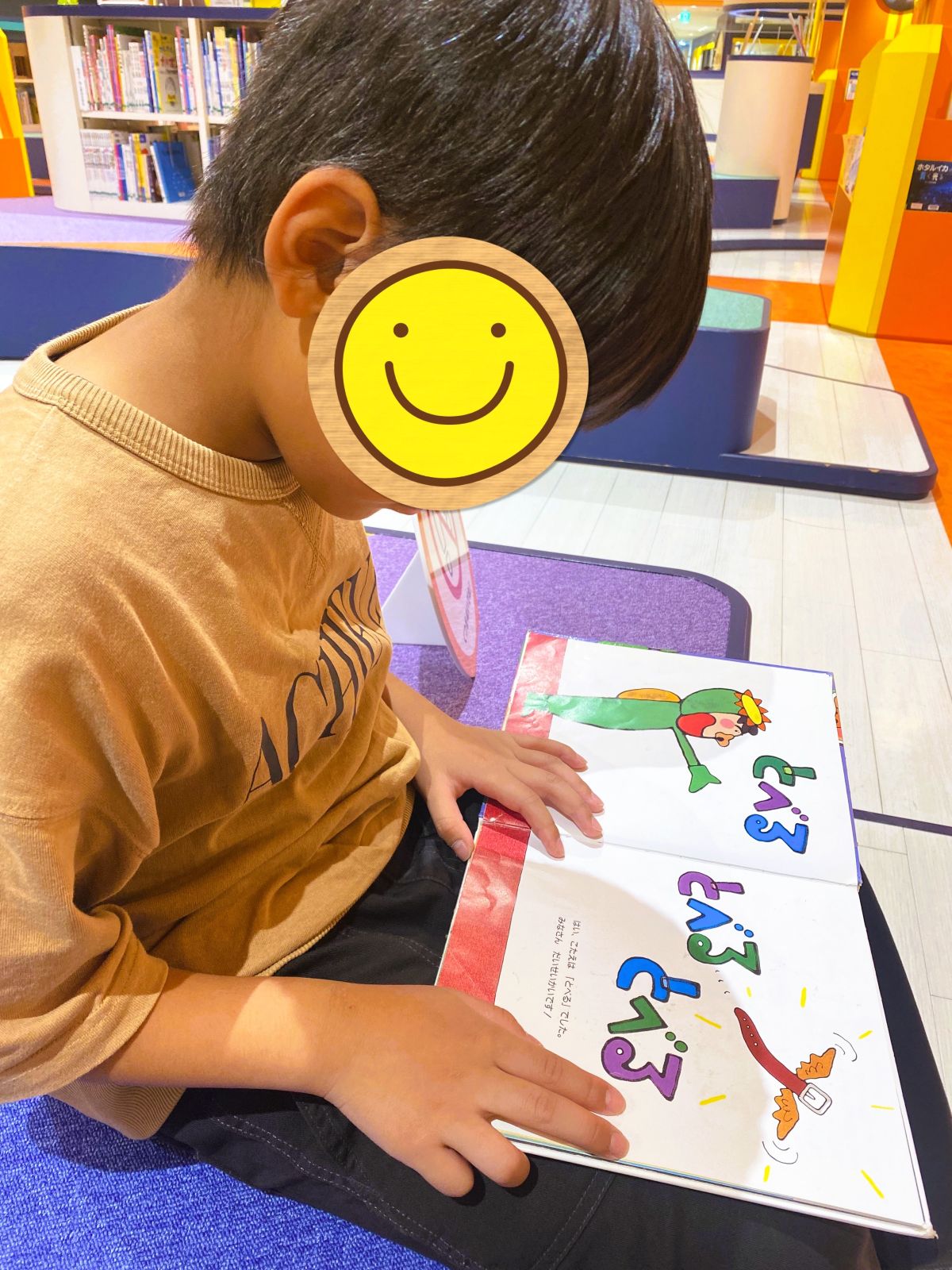 こども広場ですっかり満足していましたが、息子が小学生になったら利用できず、またこの日は5階の児童館もお休みだったので、初めて「こども図書館」を利用することにしました。