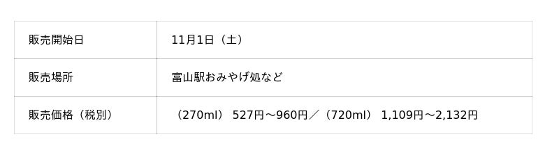 富山県酒造組合加盟14社が、自社の酒と、ラベルに表記している寿司ネタは格別に相性が良いとして、各々「寿司と相性が抜群のお酒」として発売します。お寿司を味わうひとときに、ぜひ富山の地酒をお楽しみください。富山駅のおみやげ処等で販売しています。