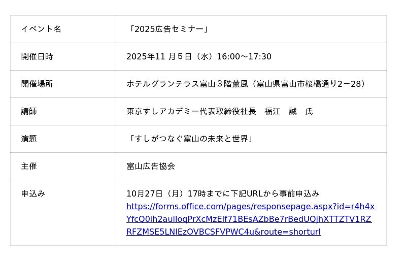 ■11月5日開催!富山広告協会「すしがつなぐ富山の未来と世界セミナー」