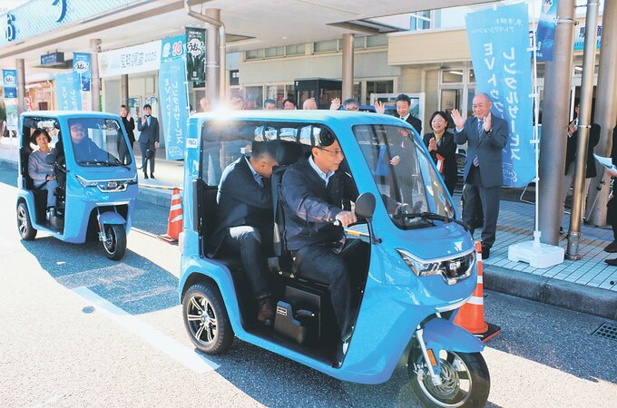 観光客の利便性や回遊性を高めて観光振興につなげようと、今年設立された魚津観光まちづくり会社(四十万隆一社長)が企画。3人乗りの車両を3台導入した。全長約2・1メートル、幅約1メートル、高さ約1・6メートルで、普通自動車免許があれば運転することができる。観光地を巡るスタンプラリーもあり、観光アクティビティとしても楽しめる。
