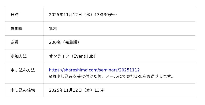 11月12日(水)開催|シェアシマは食品業界に携わる方のためのオンラインセミナーを定期開催中