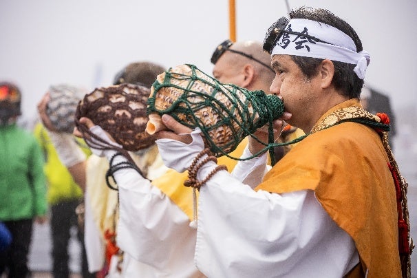午前7時30分、白山龍鳴会(はくさんりゅうめいかい)の山伏による法螺貝の厳かな音色と共に、日本三霊山ラリー2025が正式にスタート。参加ライダーたちは、悪天候をものともせず、二日間の挑戦へと走り出しました。