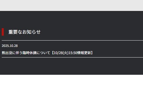 29日朝には「本日も大学構内にてクマの目撃情報が寄せられています。安全確保を最優先するため、10月29日(水)は終日、全学休講としております。学生の皆さんは、決して大学構内に立ち入らないようにしてください」と発信した。