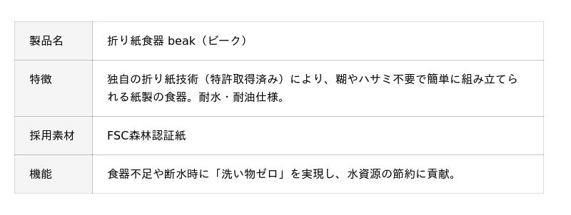 「折り紙食器 beak」の製品概要
