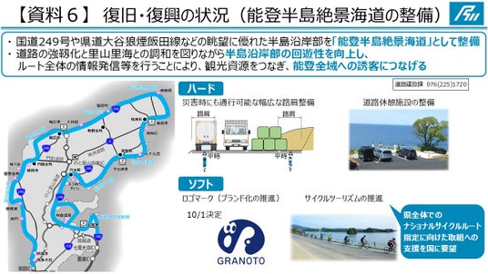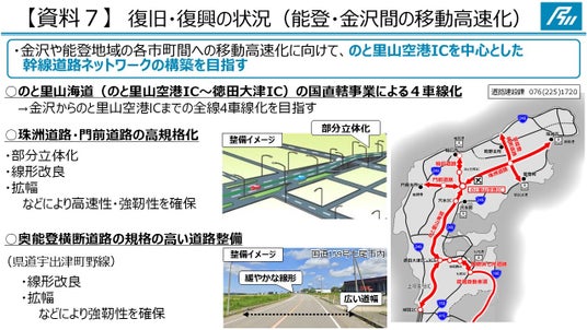 また、幹線道路の本格復旧にあたっては、強靱化はもちろん、金沢・能登間の移動高速化や観光誘客につながる能登の創造的復興となる整備が必要です。