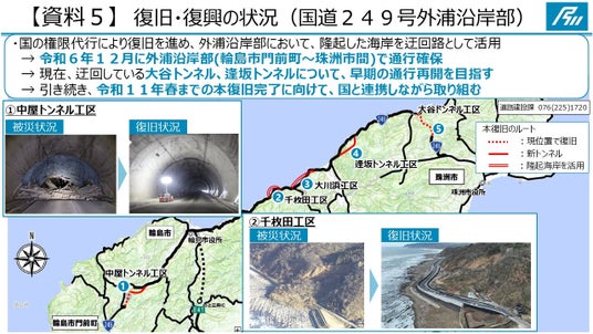 また、本復旧工事については、奥能登2市2町へのアクセスルートや緊急輸送道路などを優先して進めているところです。