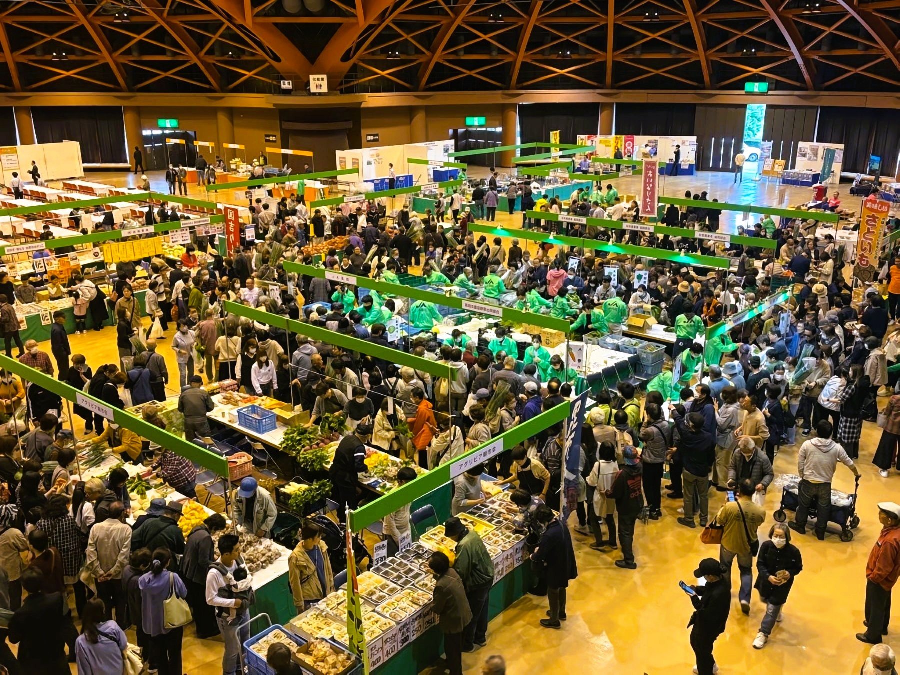 高岡テクノドームに、高岡市内の特産品、旬の野菜・果物、海産物が大集合!