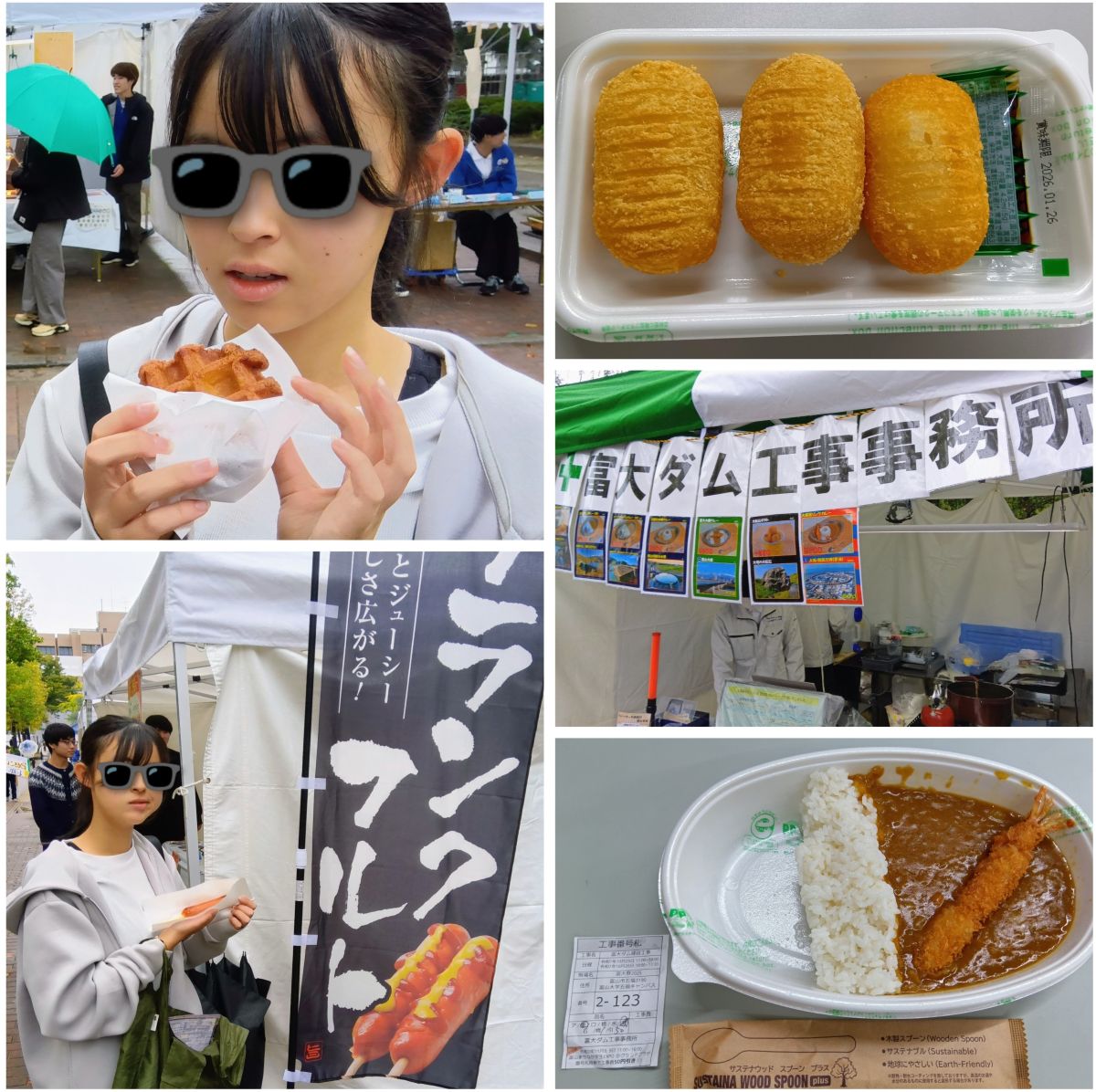 雨のために割引もあり、フランクフルト・揚げいももち・じゃがバター・ドーナツ・ワッフル・焼きもろこし・ダムカレー・焼きそばなどたくさんいただきました😆