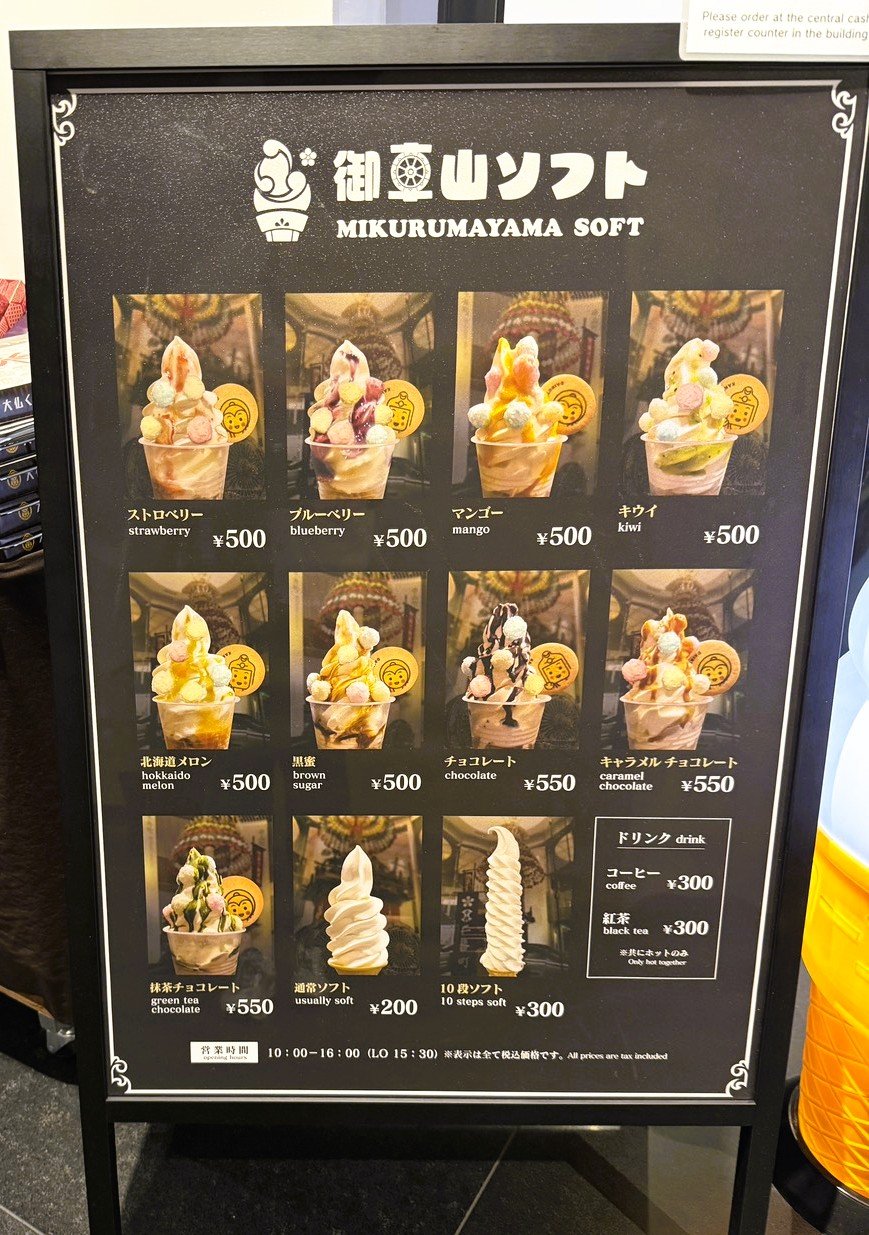 10段ソフト以外にも美味しそうなメニューが並び、娘は迷ってチョコソフト。私たち親は、10段ソフトをそれぞれ頼みました。