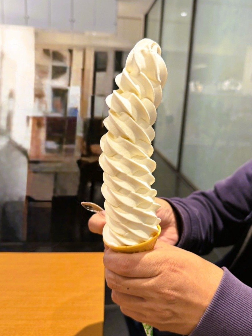ミルクがしっかり感じられる濃厚なソフトクリームで、とても美味しかったです。が、おなかいっぱいになってしまい、2人で一つで良かったね、と。次は考えて注文しようと思います。