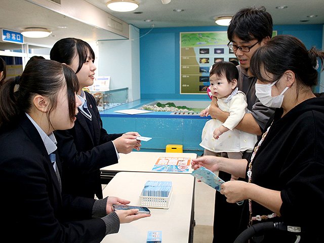 魚津水族館を盛り上げようと、富山北部高校情報デザイン科3年生が1日、魚津市三ケの同館で「回転寿司(ずし)スタンプラリー」を企画し、来館者を楽しませた。