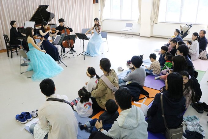 とやま室内楽フェスティバル2025の地域交流イベントが2日、魚津市の新川学びの森天神山交流館で開かれ、来場者が音楽やミニ縁日などを楽しんだ。