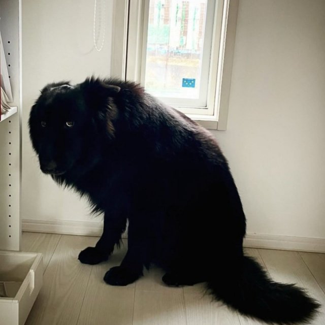 「普段あまり悪いことはしないのですが、叱られるとサササーッと逃げるタイプです。この時は2階で逃げ場がないため限界まで小さくなっており、妖怪みたいだったので写真に収めました」
