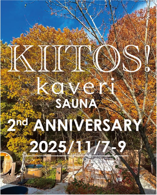 長野県軽井沢町追分にあるプライベートアウトドアサウナ kaveri(カヴェリ) は、2023年11月のグランドオープンから2周年を迎えます。これを記念し、2025年11月7日(金)~9日(日)の3日間にわたり、2周年記念イベントを開催します。また、サウナライフスタイルブランド TOTONOW を展開する 株式会社grace とともに、初のコラボレーションTシャツを発表。この取り組みを皮切りに、両者による新たなコラボレーションを順次展開してまいります。