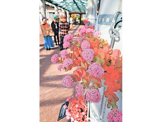 富山の固有種で絶滅危惧植物の「エッチュウミセバヤ」が、県中央植物園(富山市婦中町上轡田)で見頃を迎えている。ピンク色の花を咲かせた鉢が入園口から中央のサンライトホールに続く通路の柱に飾られ、来園者の目を引いている。見頃は今月中旬まで。