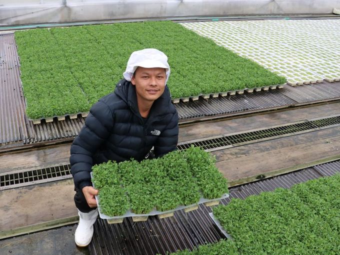現在は、種まきから水やり、収穫、梱包、出荷までを担当しています。「水やりの量やタイミング、梱包作業などを覚えるまでは大変でしたが、ネパール出身の先輩もいたので不安はなかったです。みんな優しい」とブダさん。将来は、ネパールで農園を経営したいという夢を膨らませています。
