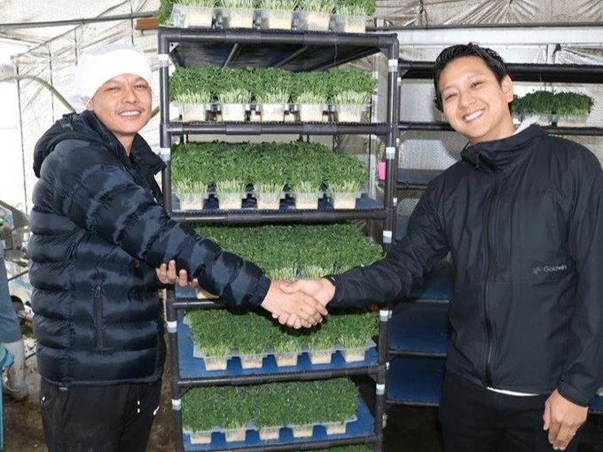 射水市寺塚原の庄東ノーサンは、カイワレ大根やブロッコリースプラウト、豆苗を生産するスプラウト農園です。代表の中谷幸葉さん(33)は、同事業の助成を受け、ネパール出身のブダ・アイバハジルさん(30)をトライアル雇用しました。