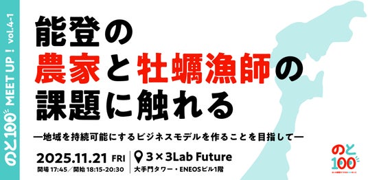 世界農業遺産「能登の里山里海」の再生と地域産業の持続的発展を目指し、のと100プロジェクト実行委員会((一社)能登半島広域観光協会・能登DMC合同会社ほか5団体)は2025年11月より、能登の農業・水産業の課題解決に取り組む共創パートナーを募集します。パートナー募集に向けて、生産者と直接出会い、共に解決策を考える場として、東京での関係創発イベントおよび能登での現地ツアーを実施いたします。