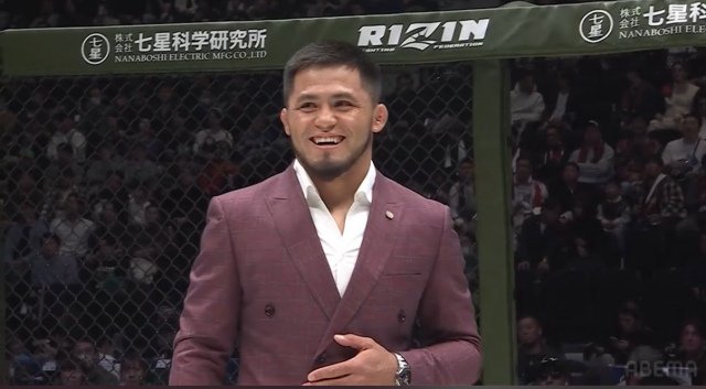 大きな歓声で迎えられた王者は「コンバンワ、カンサイ」と日本語であいさつし、「次の試合のことが話したくてキルギスから来ました。私は対戦相手が誰とでも戦えます。いつでも戦える準備ができてます。今でも戦えますよ。大みそかの大会ではどの階級でも戦える準備ができています」とアピールすると、大きな拍手を浴びた。