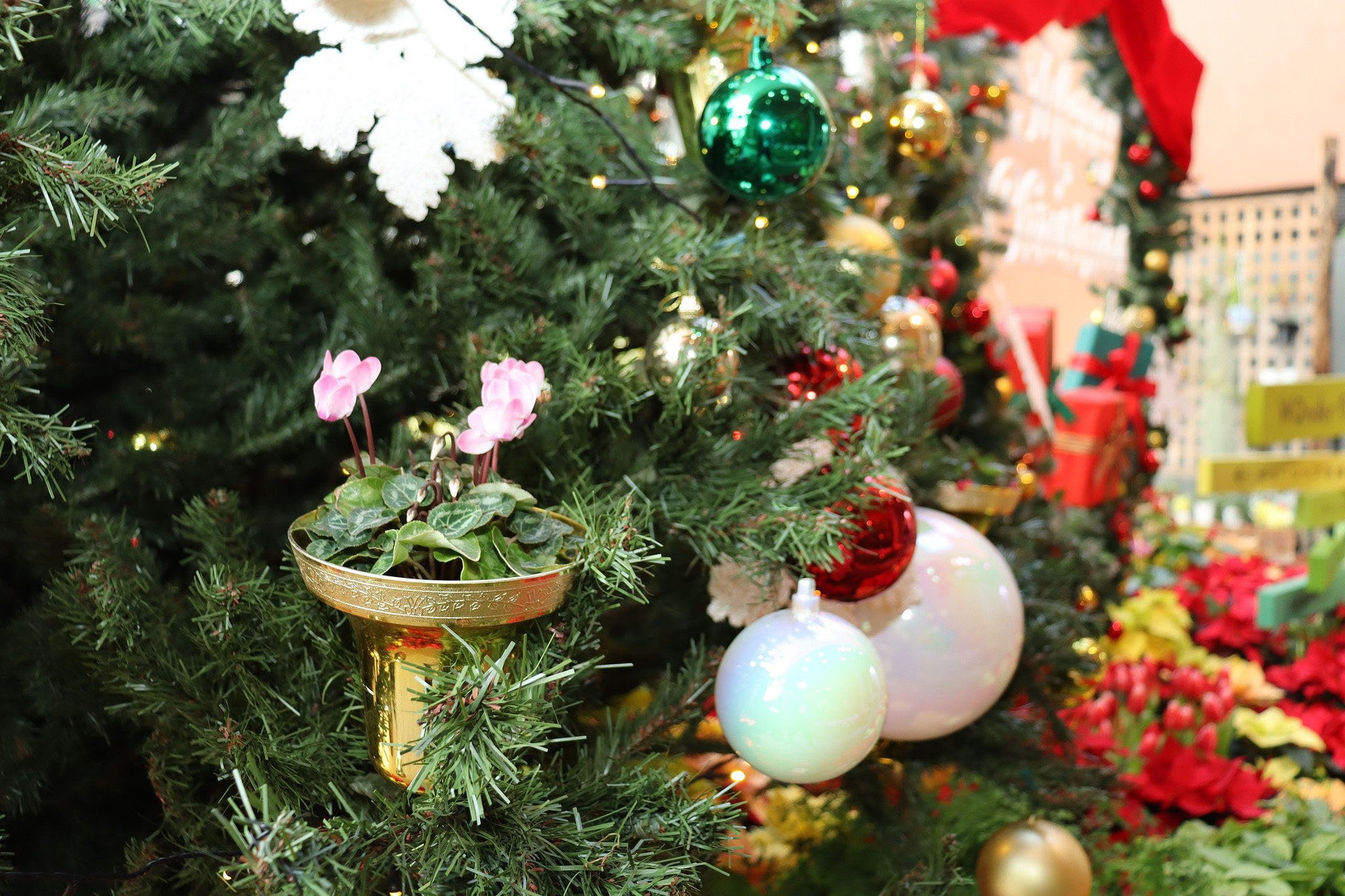雪の結晶やベル、金色のLEDライトで飾り付けたツリーや赤色のリボンが目を引くリースなどで会場を伝統的なクリスマスカラーで彩っている。同館の通路にはイルミネーションも設置する。担当者は「昼間は植物の輝き、夕方にはイルミネーションで光る雰囲気を楽しんでほしい」と話した。