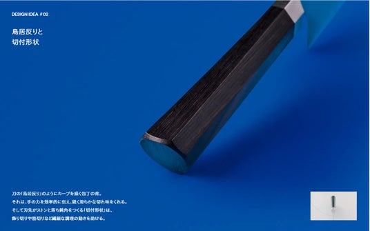 道具を作るのではなく、人が道具を使う瞬間/行為そのものを創ることを意識して、日々ものづくりを行っています。見た目の美しさだけではなく、その人が使いやすいような無駄のない「機能の美」、使う人の心を動かす形状や素材である「意匠の美」、そしてすでに成熟したこの刃物という業界の中においても、進化を諦めない「革新の美」の3つの美を取り入れてデザインをしています。