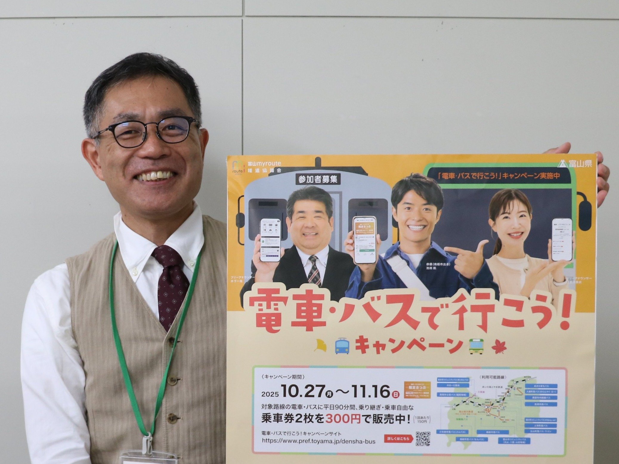 特に普段車移動の多い方に電車やバスの便利さ、快適さを感じてもらい、公共交通を中心としたライフスタイルのよさを知ってもらう入口として企画された本キャンペーンについて、県交通政策局の黒﨑勇一さん(同地域交通・新幹線政策室 交通戦略企画課長)に狙いや取り組み内容を聞きました。