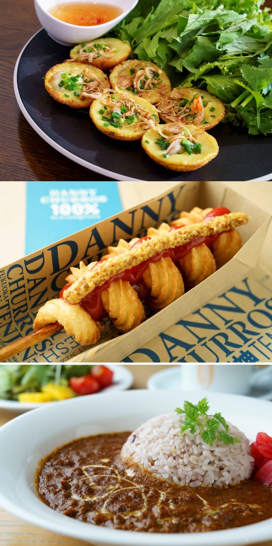 米粉グルメのワールドルートは、ベトナムのストリートフードであるバインコットからスタート!おやつにはスペインの国民的スイーツ、カリッふわっなチュロスを。そして、夜はカレーで米粉のワールドグルメを堪能する食べ歩きルートです。アジアからヨーロッパまで、「もちもち、カリふわ」なワールドグルメを巡り尽くしましょう!