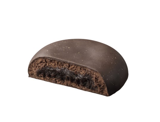石川県小松市で、昭和23年に創業し70年以上の歴史をもつ『加賀菓子処 御朱印』の代表商品であるチョコレート饅頭「御朱印」をゴディバオリジナルにアレンジしました。カカオ分72%のダークチョコレートを使用した味わい深くねっとりとした食感の餡が特徴です。