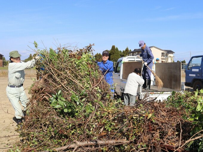 リサイクル大作戦は、屋敷林所有者の経済的な負担を減らし、法律で禁止されている野焼きを防ごうと、市が2021年から春と秋の年2回実施している。