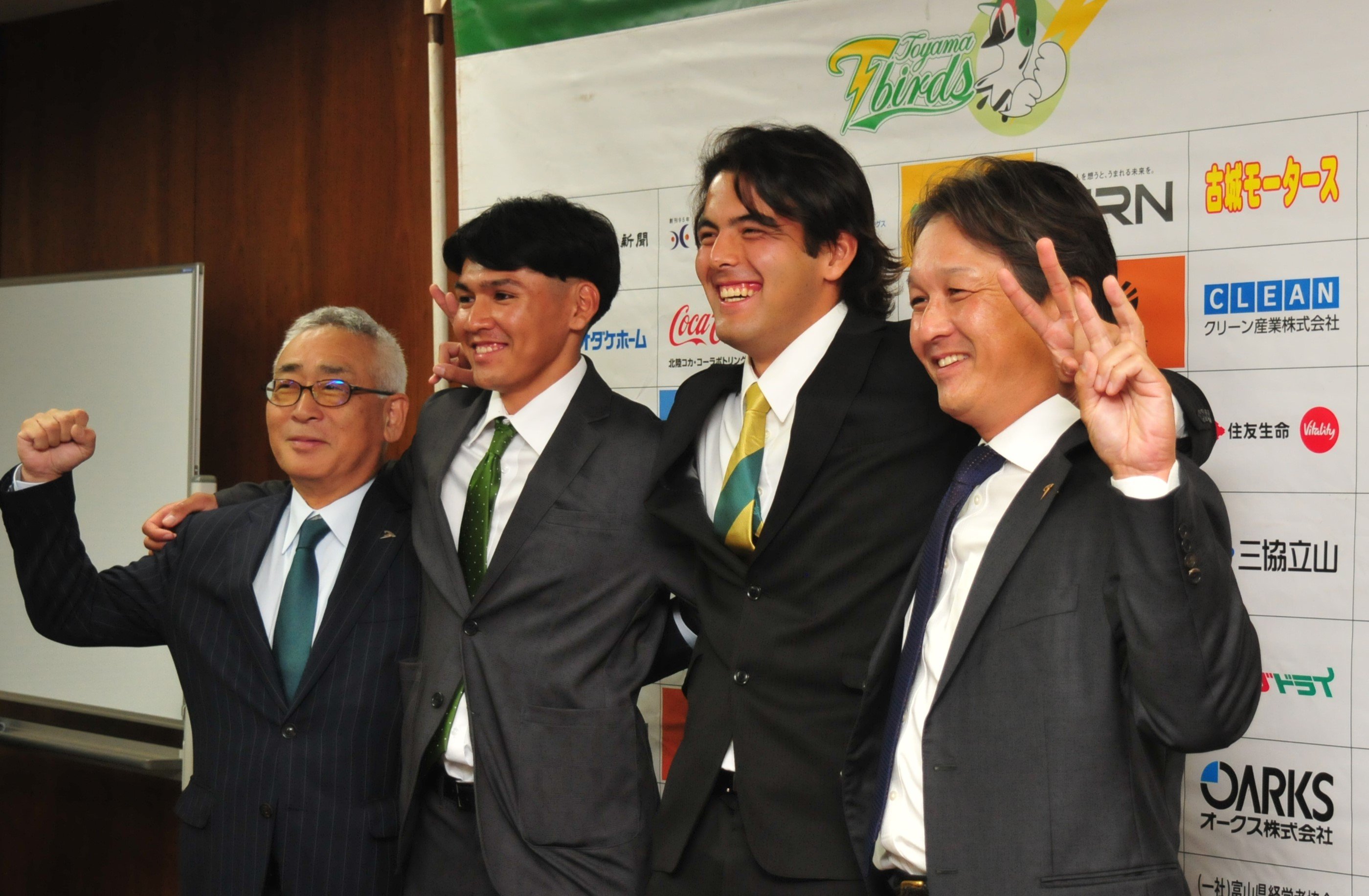 野球独立リーグ・日本海リーグの富山GRNサンダーバーズから今年も2人がNPB(日本野球機構)の舞台に巣立つ。目標だったドラフト指名を勝ち取り、プロ選手としてのスタートラインに立った幌村黛汰外野手(楽天育成1位)、シャピロ・マシュー・一郎投手(オリックス育成2位)が会見などで語った喜びと決意を詳報する。(赤壁逸朗)
