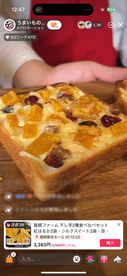 「生産地と東京のスタジオが繋がっているのがすごい。『1000人以上の方が見ている』と聞いて本当に驚きました。うちの干し芋やさつまいもを多くの方に見てもらえるなんて嬉しい限りです。実際にその場で購入される体験を見てとても感動しました。」