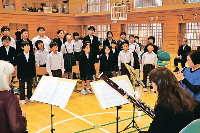 閉校を控えた富山県南砺市上平小学校で10日、プロの音楽家を招いた「あすなろコンサート」が開かれた。子どもたちが演奏に合わせて校歌を歌ったり、郷土民謡を踊ったりし、母校や古里への思いを再確認した。