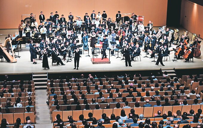 「佐渡裕(ゆたか)指揮×シエナ・ウインド・オーケストラ演奏会 ブラスの祭典2025」が9日、氷見市芸術文化館であった。ホールを埋めた約800人が、佐渡さんがタクトで織りなすハーモニーに酔いしれた。アンコール曲「星条旗よ永遠なれ」は楽器持参の観客も演奏に加わり、会場一体となってフィナーレを飾った。