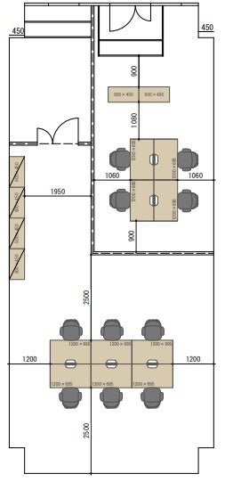 4人部屋壁付けレイアウト