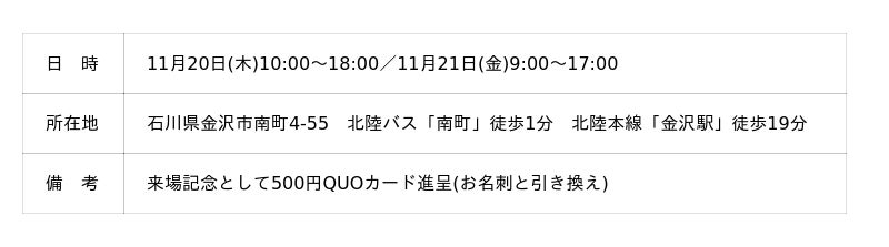株式会社ワキタ(本社:大阪市西区/代表取締役社長:脇田貞二)は金沢市中心部の南町に位置する「WAKITA金沢ビル」にて家具付き小規模オフィスを新たに開設しました。支店・営業拠点、スタートアップやサテライト拠点に最適な新区画の公開にあわせ、2025年11月20日(木)・21日(金)に内覧会を開催します。